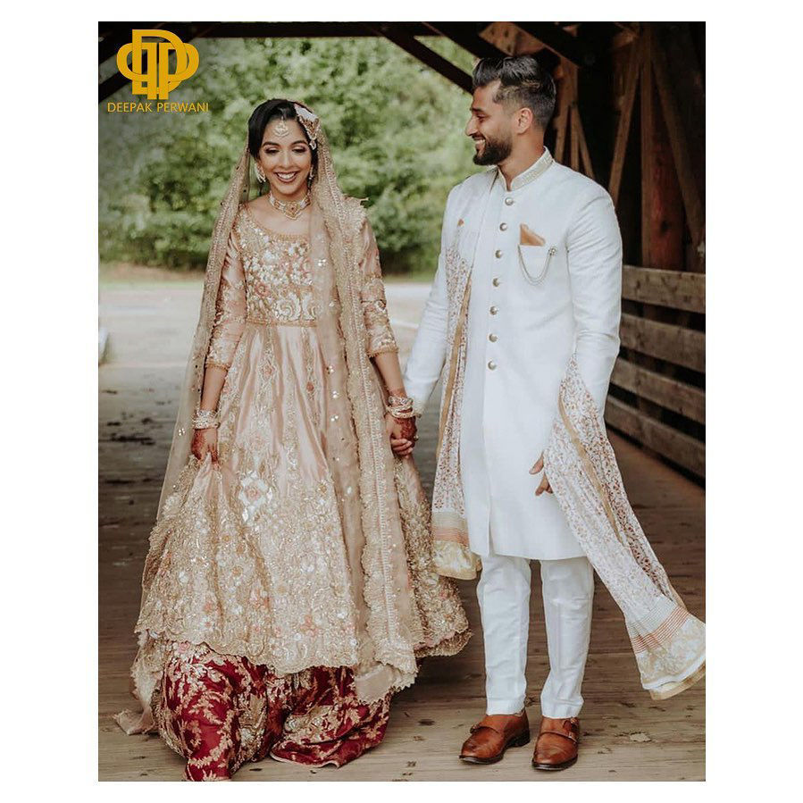 Our client looks absolute dapper in this custom designed Sherwani by Deepak Perwani.