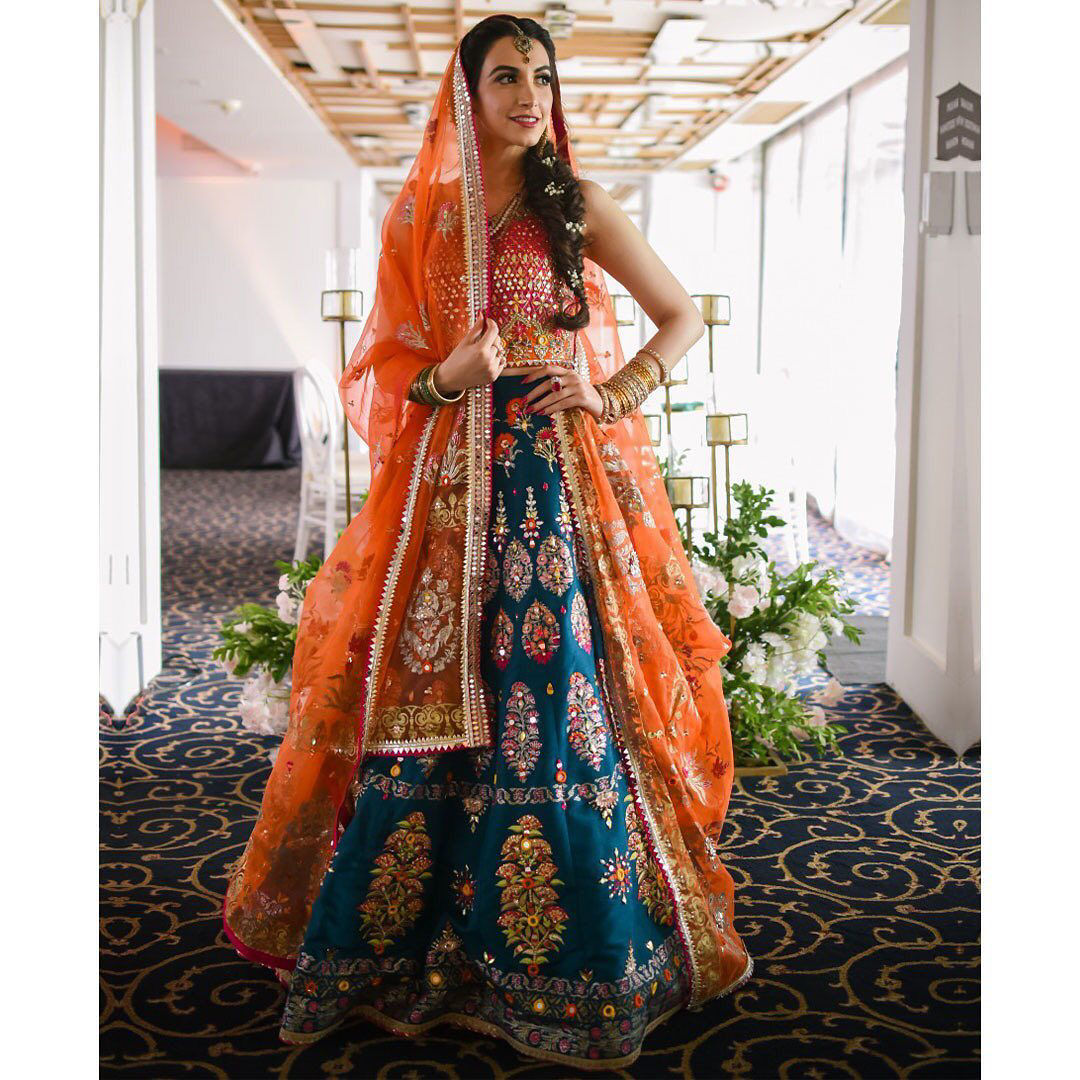 Our gorgeous bride, Mona Shah looks like a vision in a traditional dreamy creation for her Mehendi. This artisanal ensemble painstakingly is crafted with our signature heirloom embroideries, exquisite craftsmanship, and attention to detail.