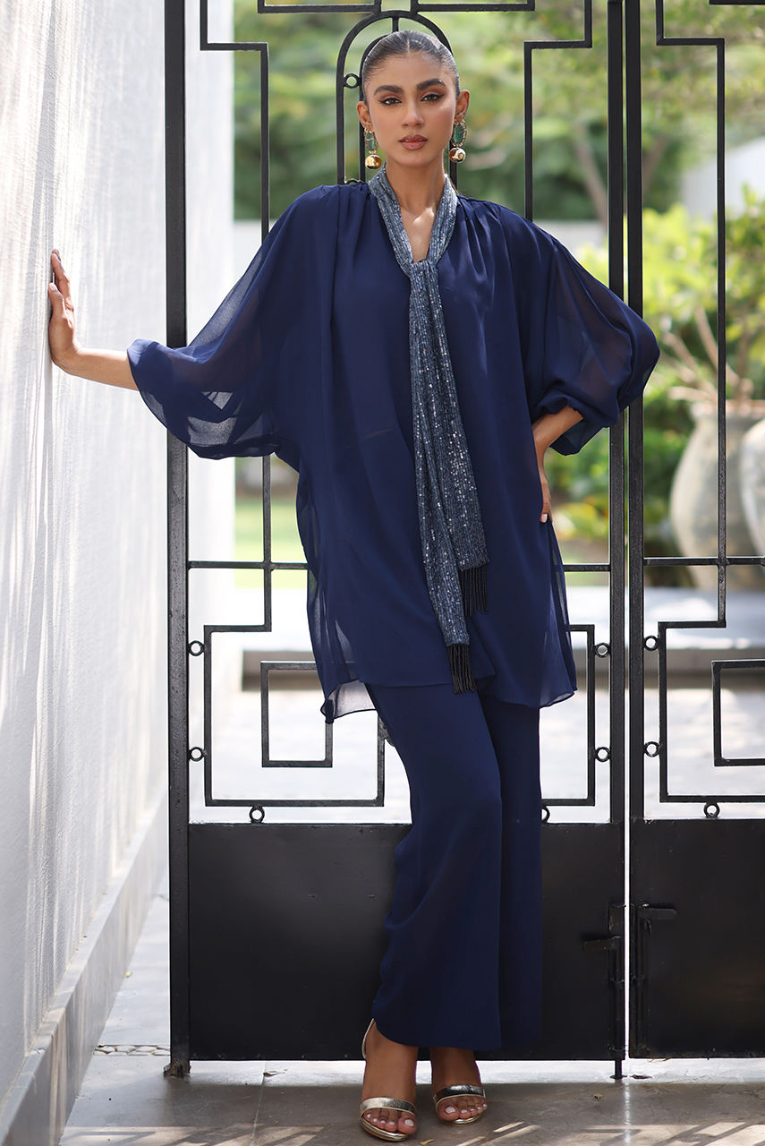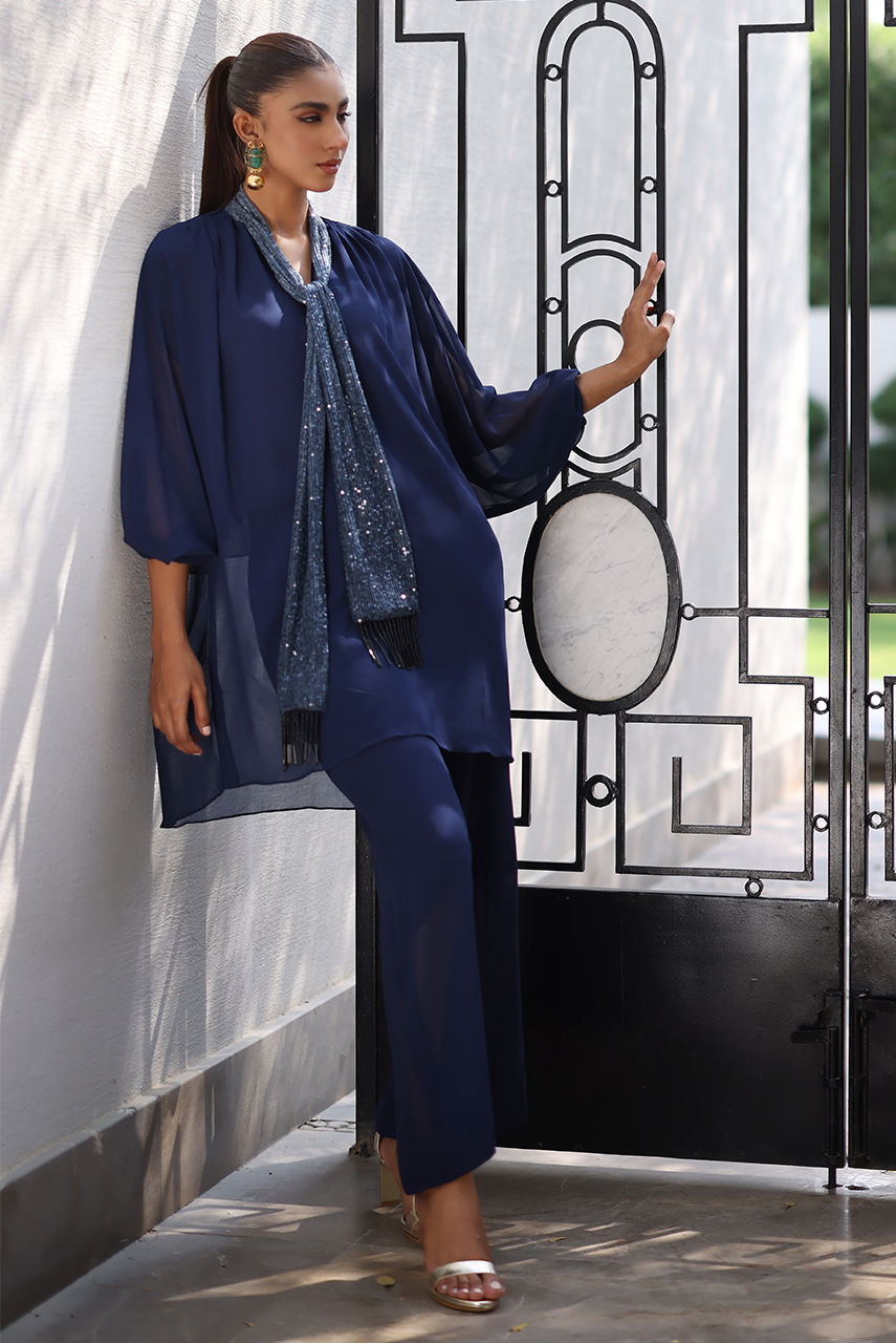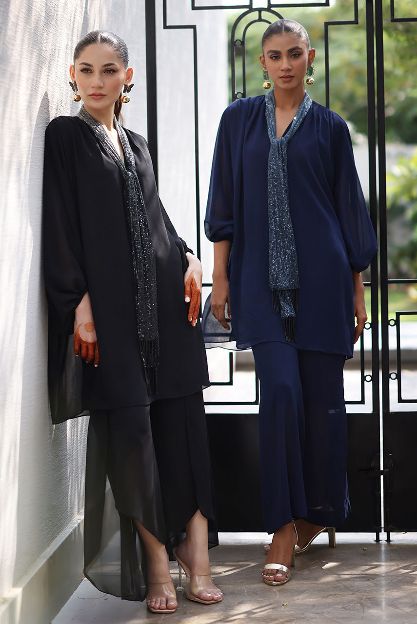 This beautiful luxury pret piece blends elegance ,sophistication and high end fashion together. Cut from Georgette and shaded sequin finished with beaded fringe.