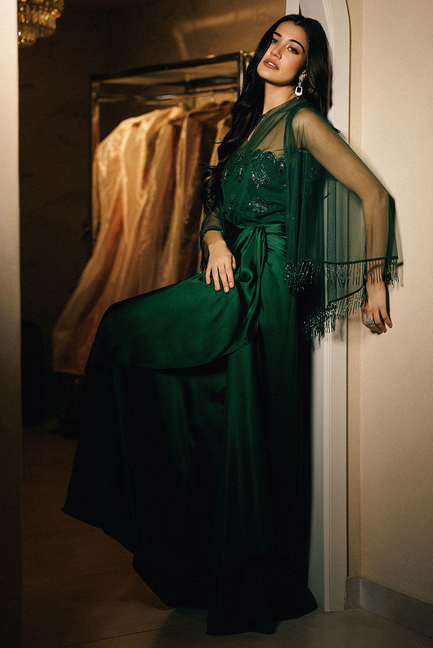 Color: Emerald Fabric: Silk Work Details: Embellished