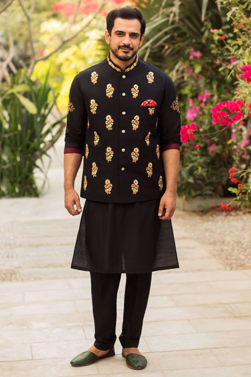 Color: Black Fabric: Raw Silk Work Details: Embroidered