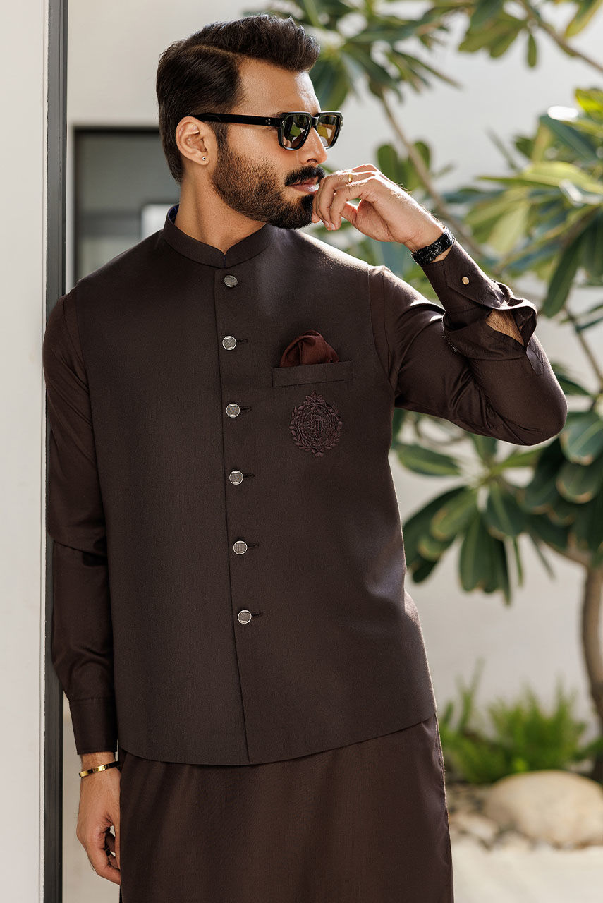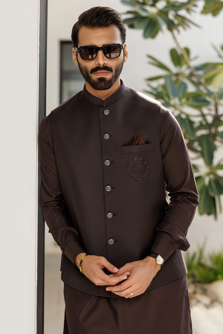 This brown suiting waistcoat exudes refined elegance, showcasing the iconic DP logo and adorned with stylish textured buttons. Crafted from premium suiting fabric, its rich brown hue adds warmth and sophistication to any ensemble. The prominent DP logo symbolizes quality and style, while the bold choice of buttons adds a touch of contemporary flair. Perfect for upscale events or formal occasions, this waistcoat effortlessly combines classic charm with a dash of daring allure, making it a standout piece in any wardrobe.