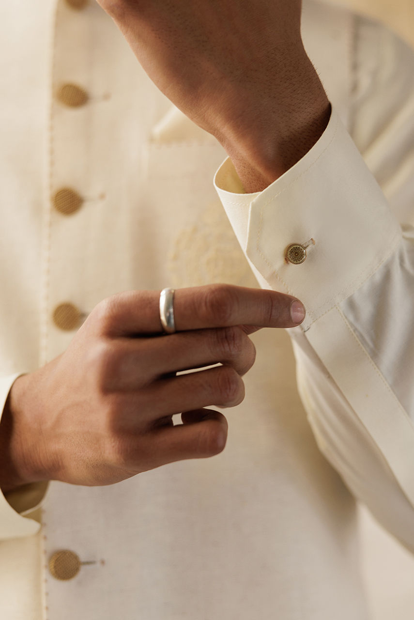 This off-white Boski linen kurta shalwar ensemble exudes understated elegance, elevated by its beautiful and stylishly crafted buttons. Tailored from premium Boski linen fabric, the kurta shalwar offers a timeless appeal with a modern twist.