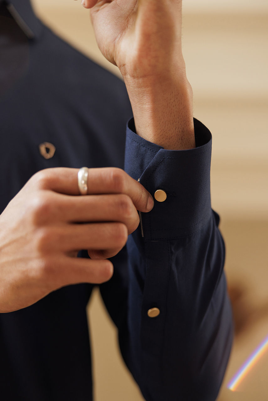 This navy blue Boski linen garment is a testament to refined craftsmanship, accentuated by its metal buttons and intricate DP detailing. The rich hue exudes sophistication, while the metal buttons add a touch of contemporary elegance. The subtle DP detailing further enhances its allure, reflecting the brand's commitment to quality and style.