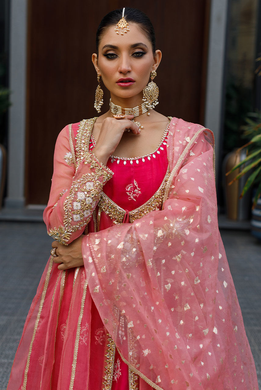 Color: Pink Fabric: Organza Work Details: Hand Worked