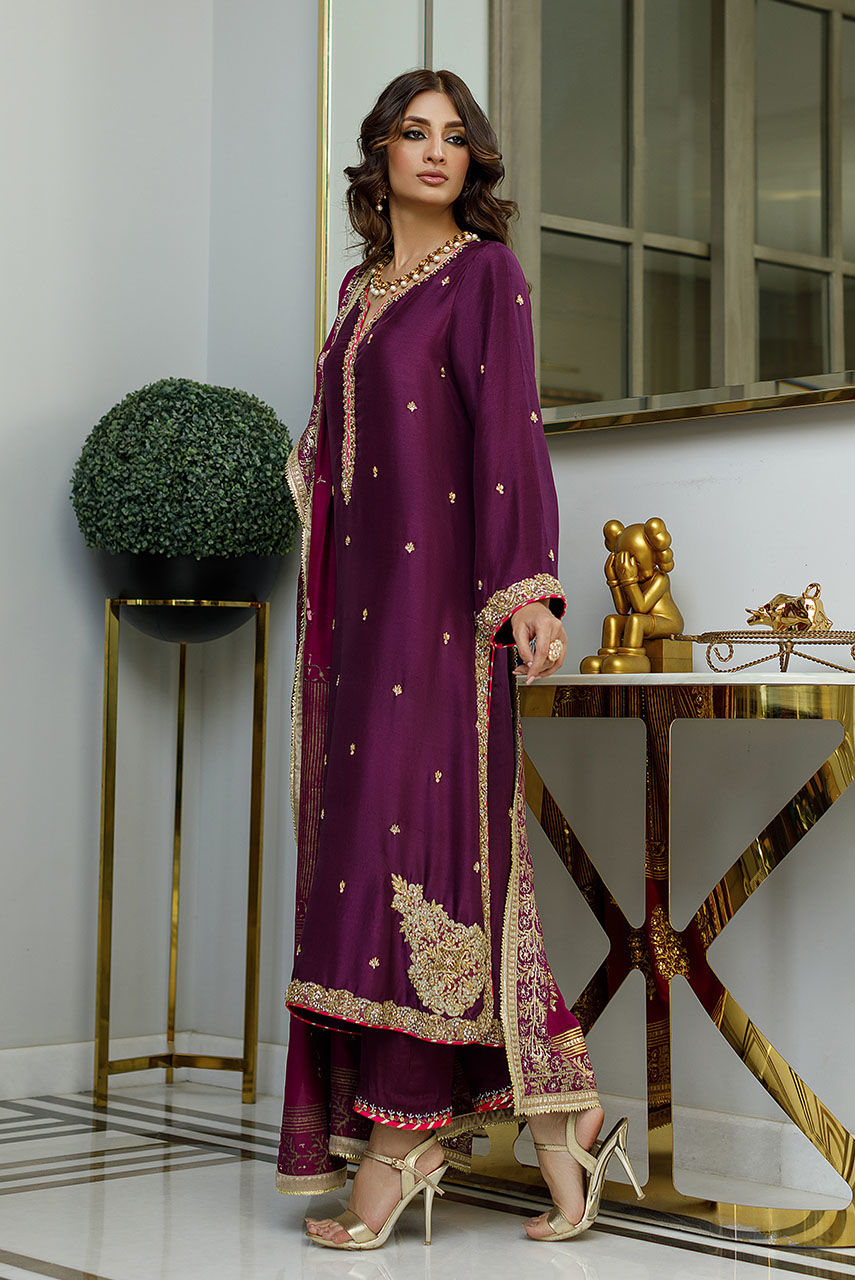 Color: Plum Fabric: Raw Silk Work Details: Hand Worked