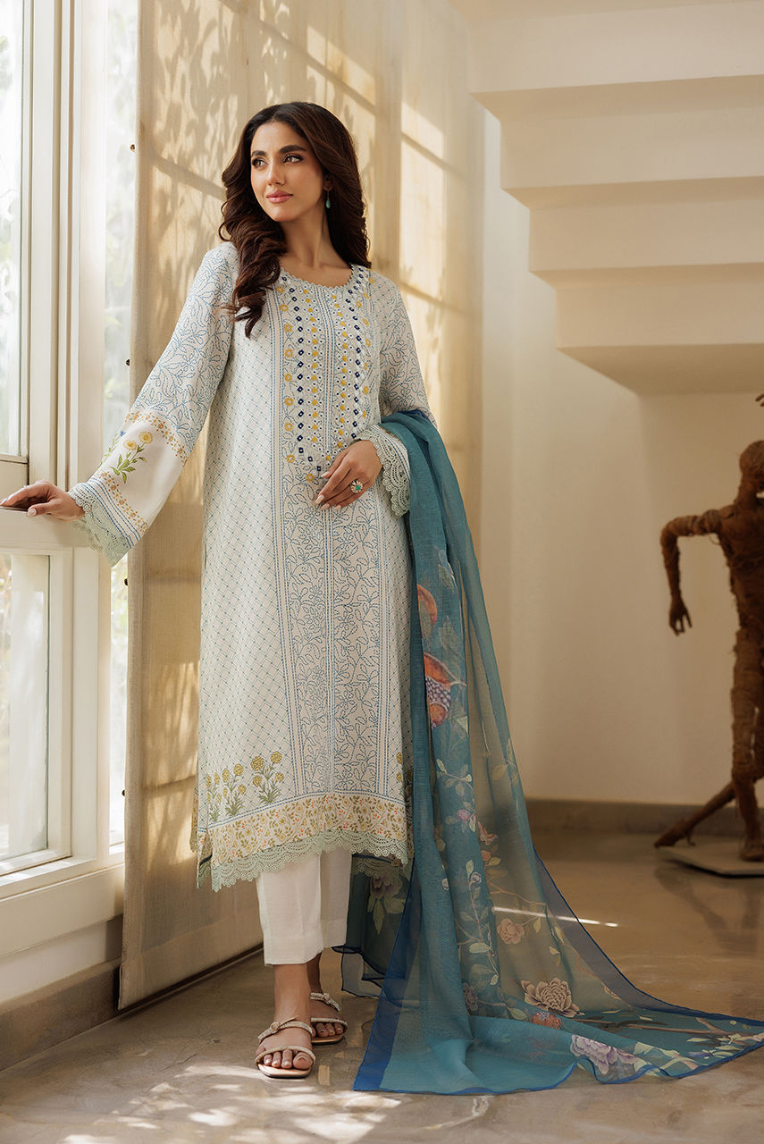 Color: White and Blue Fabric: Bamber Silk Work Details: Embroidered