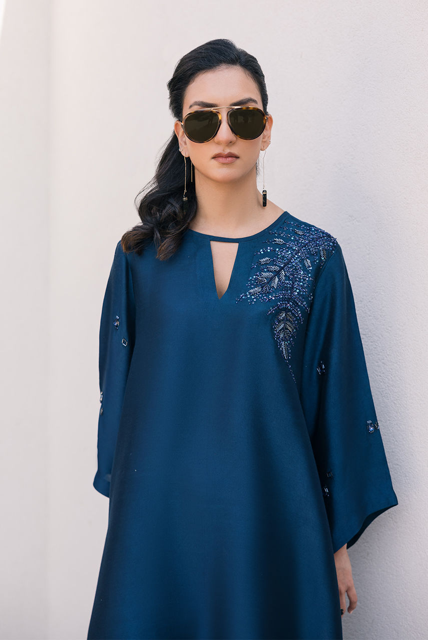 Color: Blue Fabric: Shisha Silk Work Details: Hand Embroidred