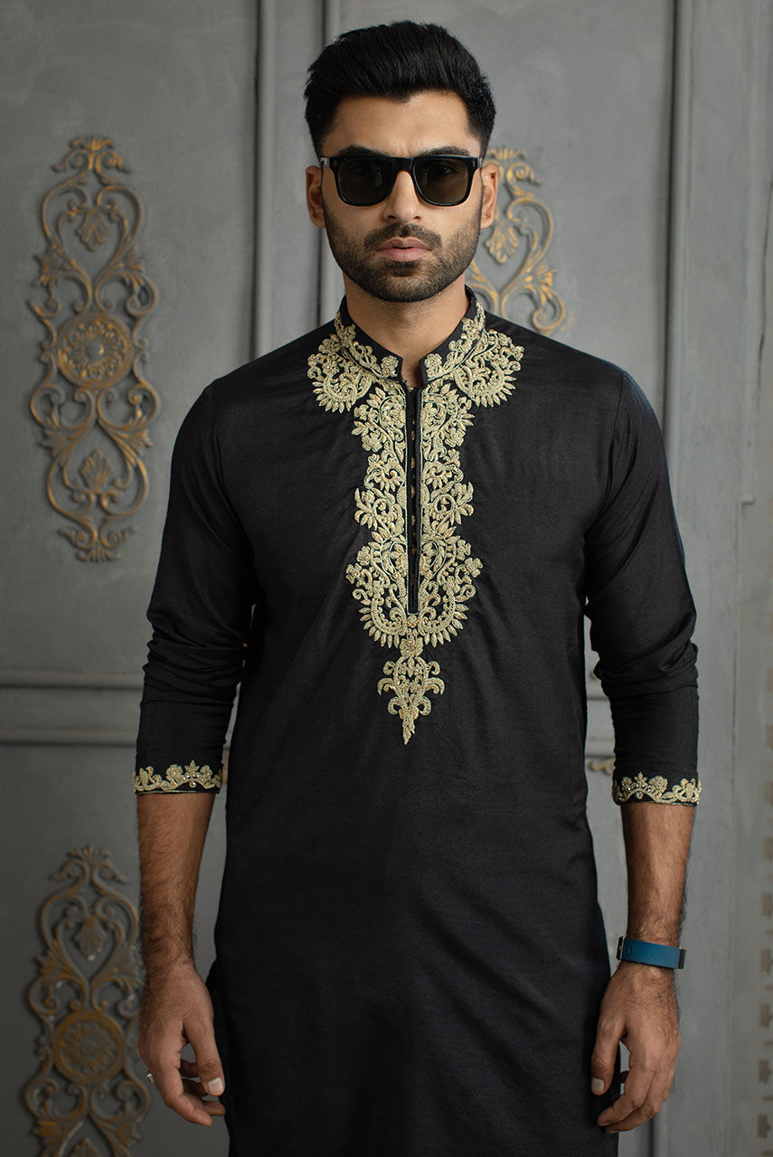 Color: Black Fabric: Raw Silk Work Details: Hand Embroidered